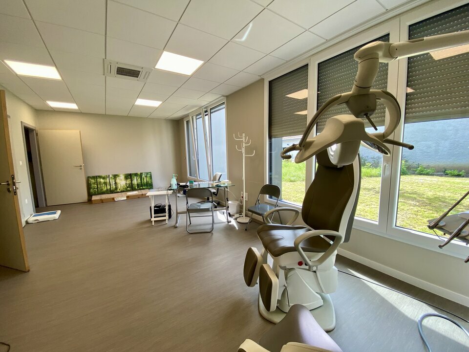 Au rez-de-chaussée d’un pôle santé construit en 2021, une cellule de bureaux de 50m² comprenant un accueil avec WC PMR, un bel open-space avec de nombreuses fenêtres donnant accès à deux réserves dont une avec point d’eau et un second WC. Prestations de qualité : pompe à chaleur avec climatisation réversible, volets roulants motorisés, sol linoléum. Parking commun à l’ensemble du pôle.